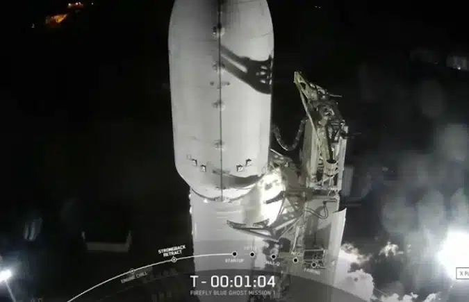 El módulo de aterrizaje de Firefly Aerospace, una firma aeroespacial de Texas, despegó sin contratiempos a la 1:11 hora local (6:11 GMT) a bordo de un cohete Falcon 9 de SpaceX, cumpliendo con el cronograma, desde el Centro Espacial Kennedy.